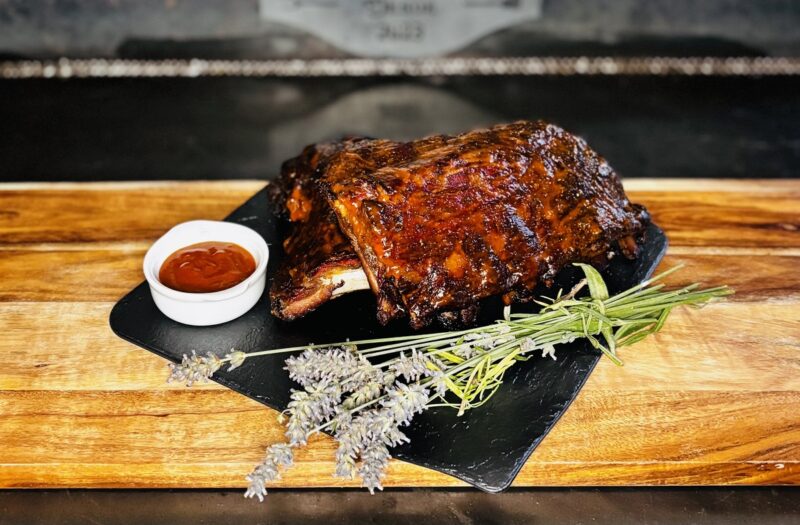 Disfruta de unas irresistibles costillas St. Louis ahumadas estilo Ahuma D´or, ya cocinadas y listas para calentar en el horno de forma rápida y sencilla. En solo unos minutos tendrás en tu mesa una carne de cerdo tierna y jugosa, impregnada de todo el sabor del ahumado y acompañada de una exquisita salsa barbacoa artesana con la fórmula única de Ahuma D´or que realza cada bocado.