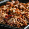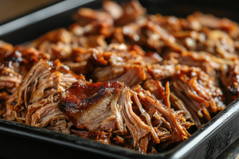 Carne de cerdo Duroc ahumada y cocinada lentamente a baja temperatura, de textura tierna, jugosa y lleno de sabor.